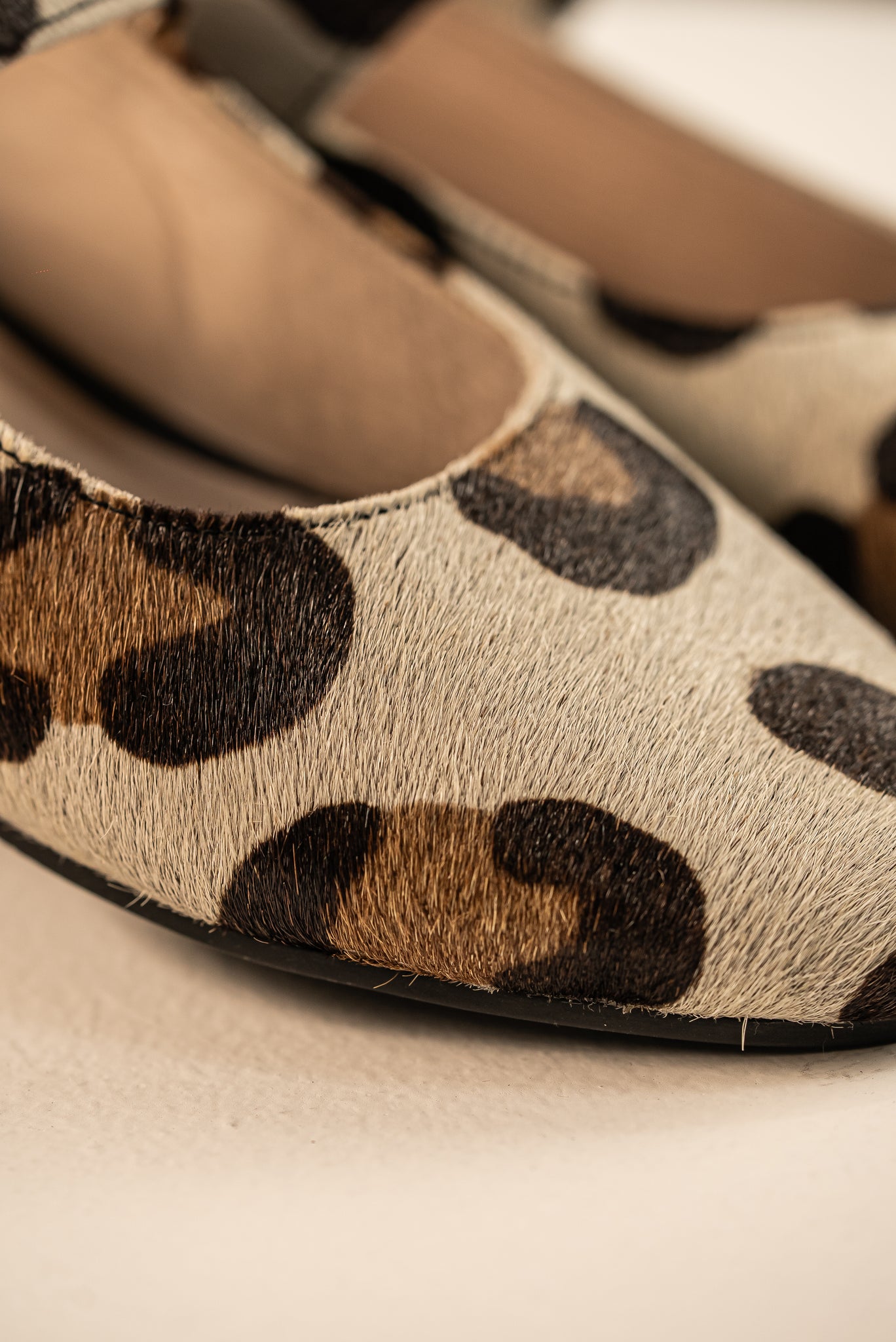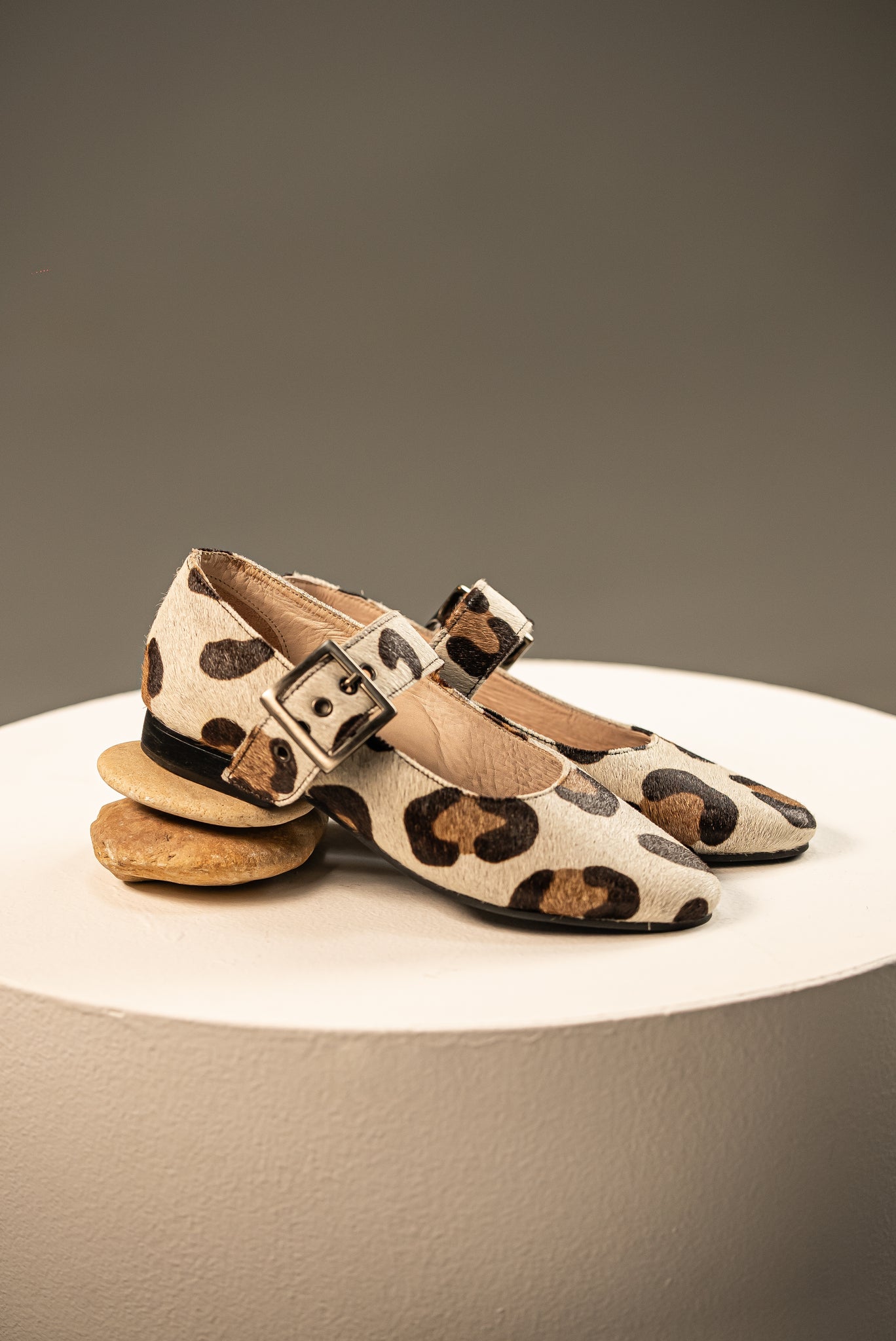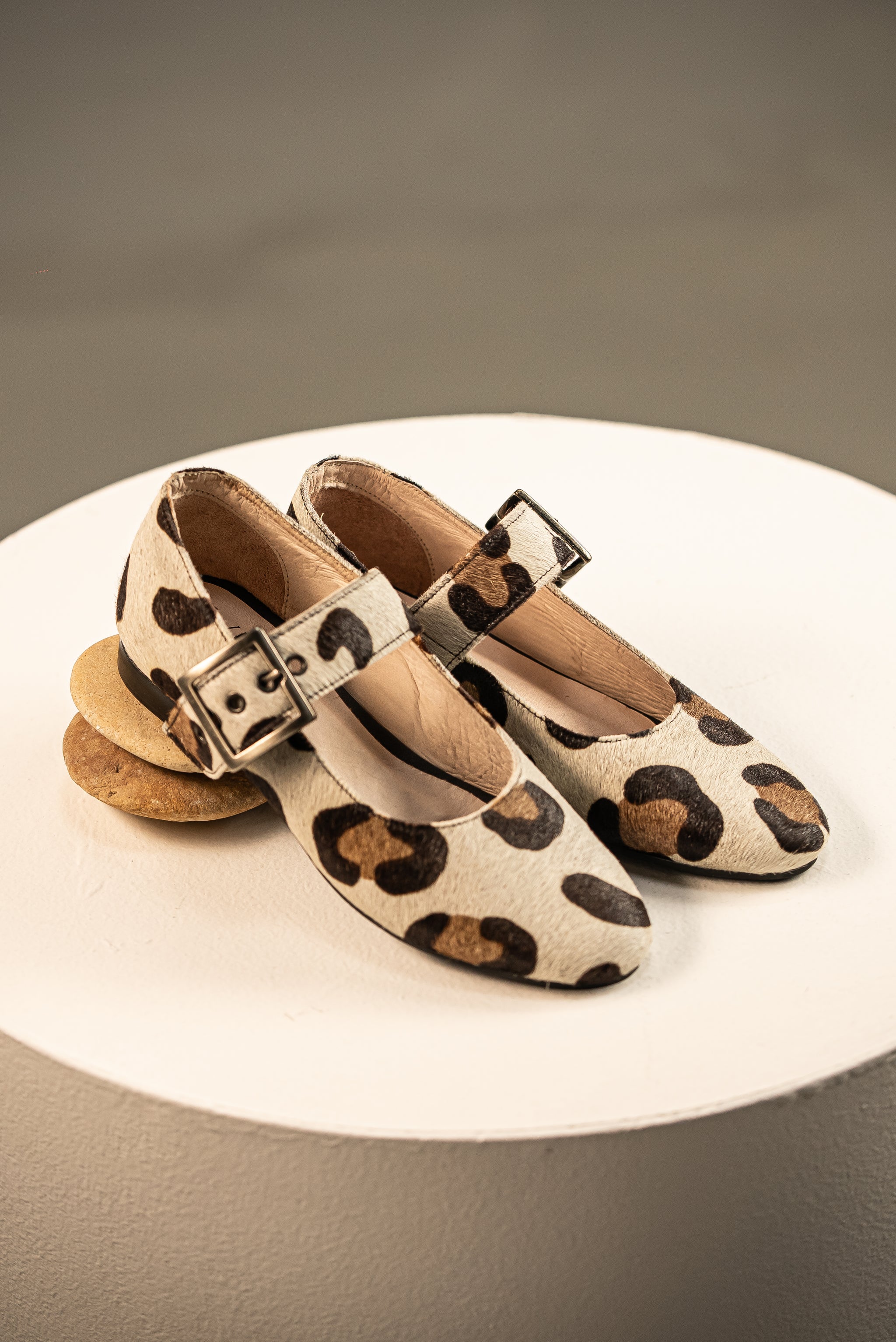 Elaboradas con cuero con acabado de pelo de una textura increíblemente suave, estas Mary Jane capturan la esencia del animal print en un diseño clásico. La calidad del cuero y el detalle de la hebilla metálica ofrecen un calzado duradero y distintivo, ideal para quien busca impacto y distinción sin sacrificar el confort.