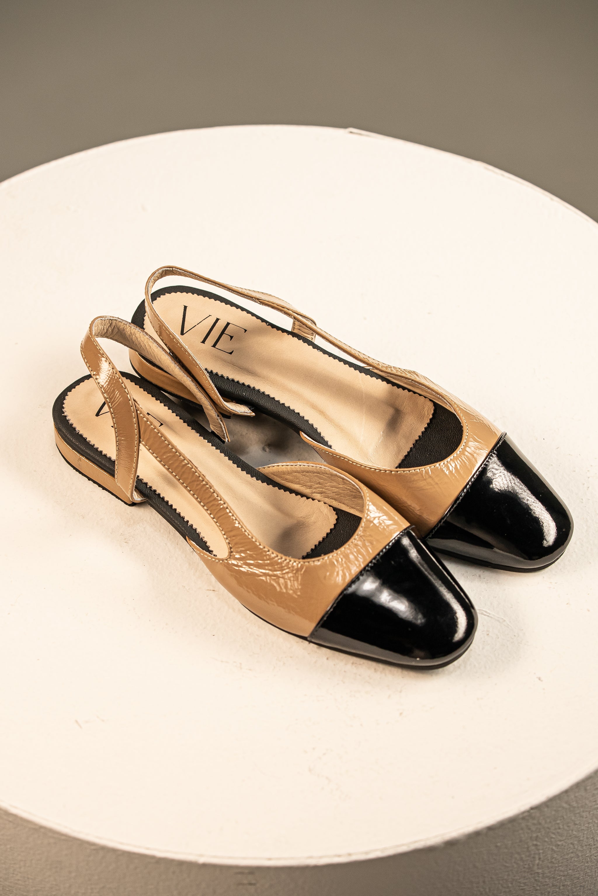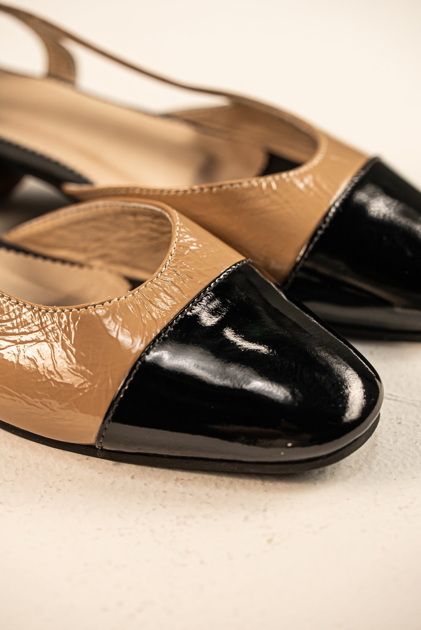 Fusionan el brillo del cuero metálico plateado con la sofisticación del cuero charol negro en el diseño Cap-Toe. Su moderna silueta con talón descubierto y un pequeño tacón proporciona el equilibrio perfecto entre comodidad y vanguardia. Elaboradas en cuero genuino, estas baletas son ideales para quienes desean inyectar un toque de glamour y audacia chic a sus conjuntos.