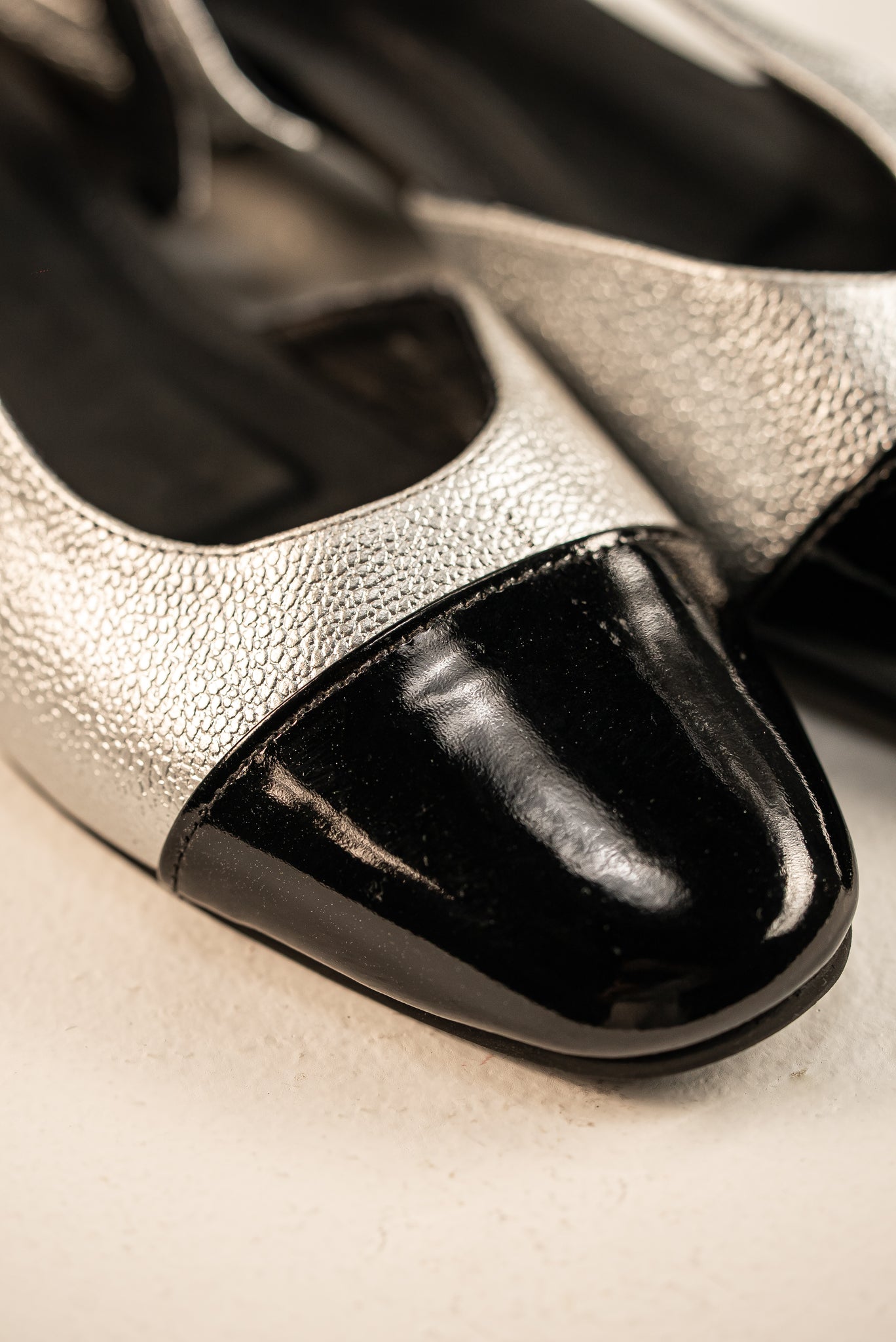 Combinan el cuero charol de alto brillo en la clásica y elegante dupla de nude y negro. Su diseño con talón descubierto y un pequeño tacón proporciona una silueta chic y muy cómoda. Elaboradas en cuero de alta calidad, son la pieza esencial para un look pulido