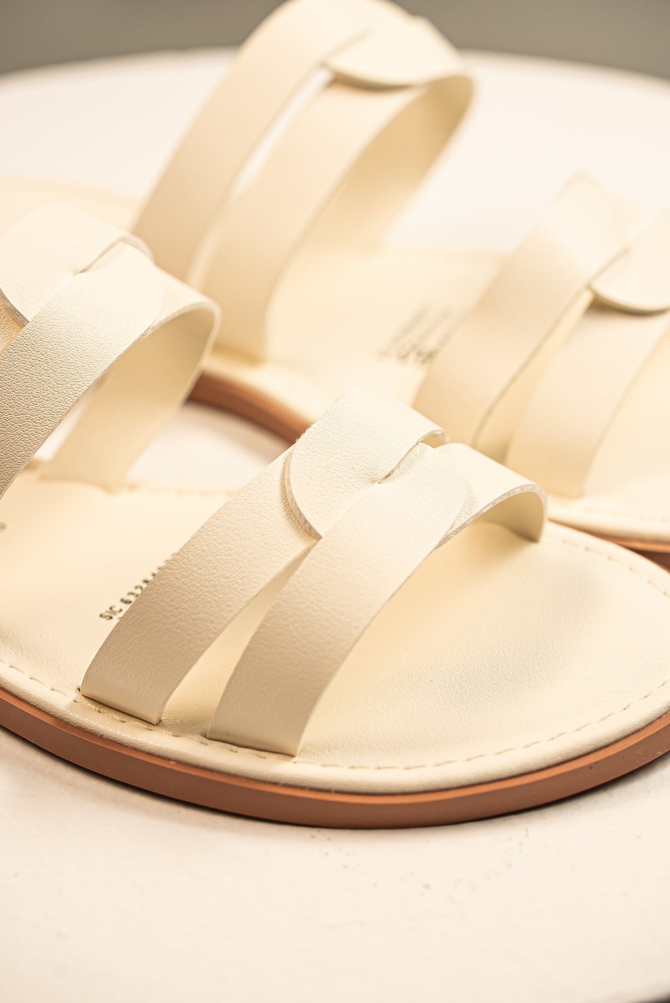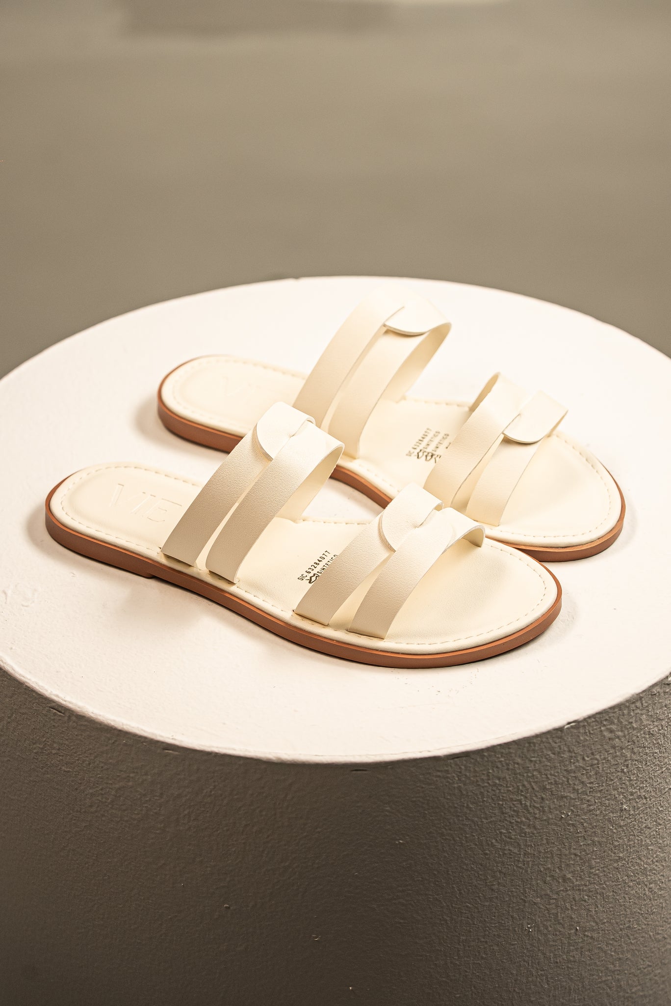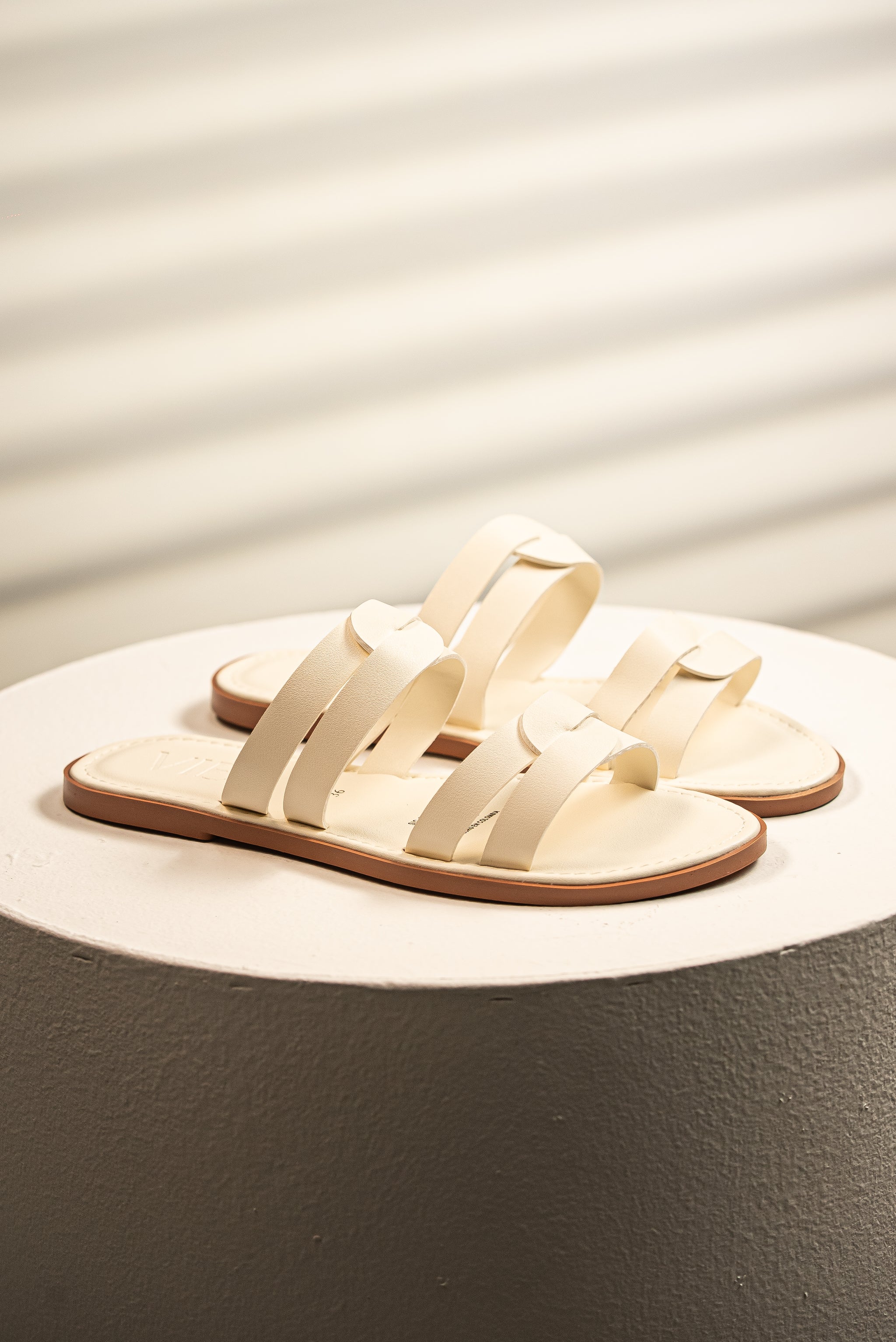 Este modelo presenta un diseño minimalista de doble tira ancha y lisa, ideal para un calce rápido y máxima comodidad. Su tono claro la convierte en el complemento perfecto para un look de verano, playa o casual que requiere un toque de ligereza y sofisticación.