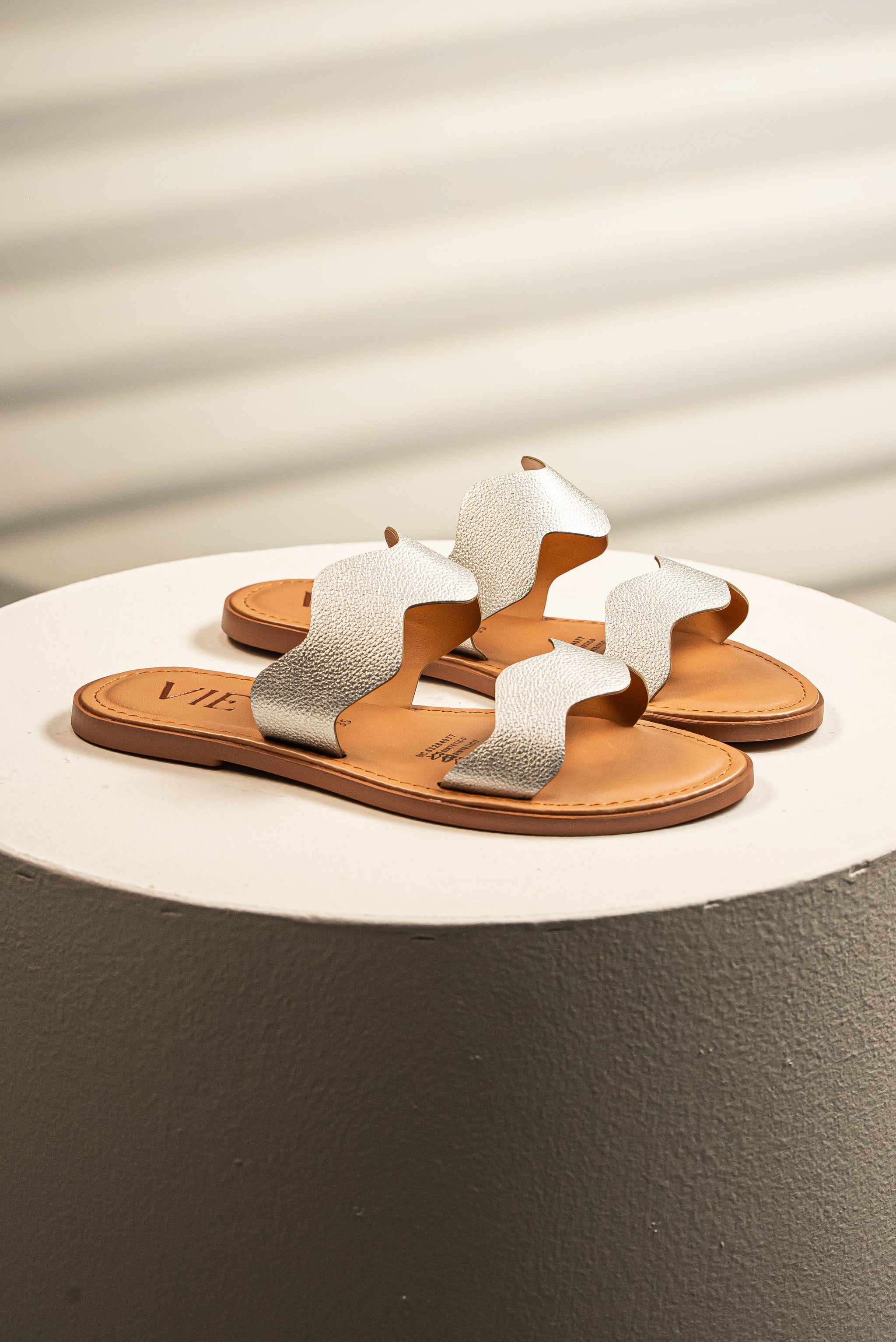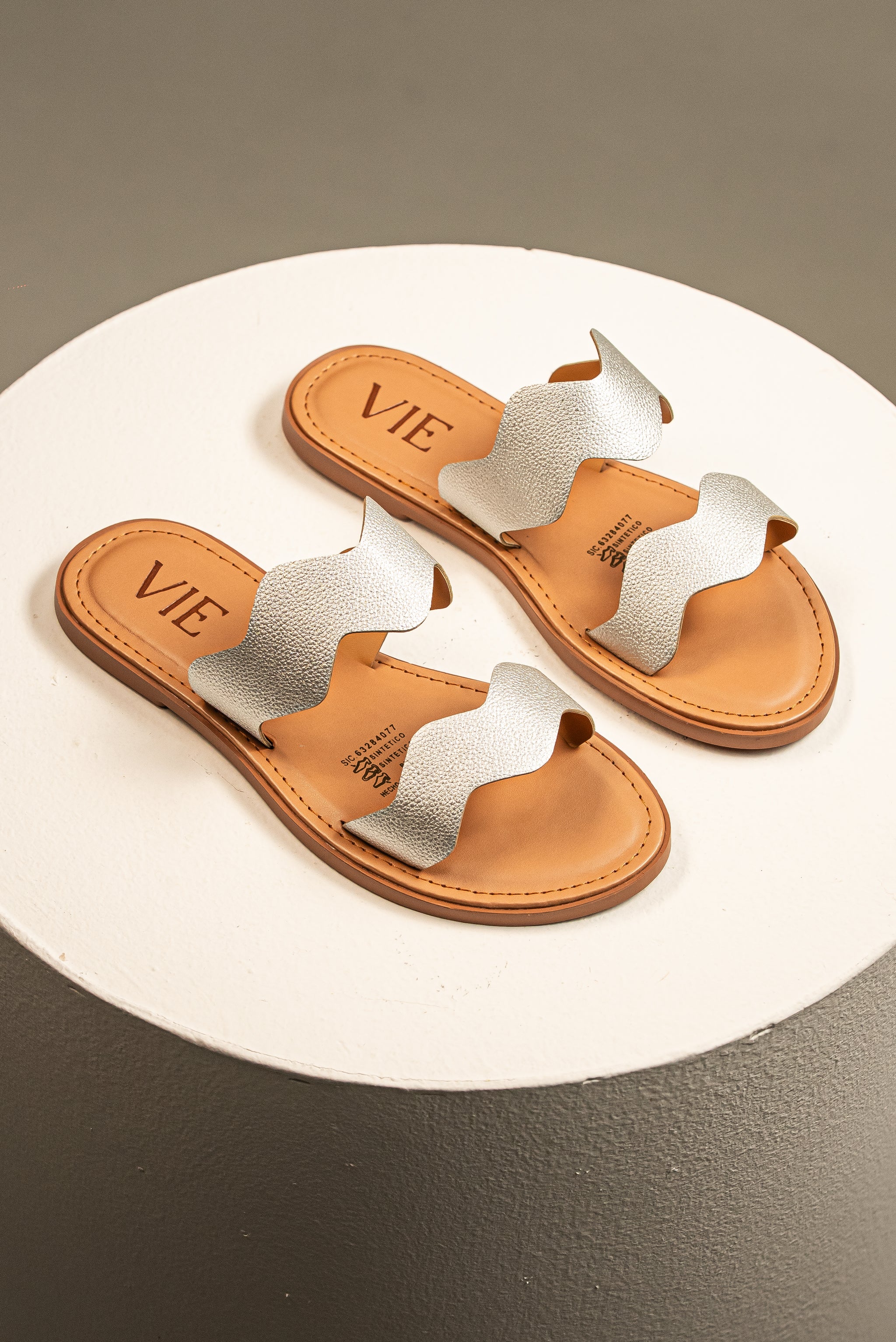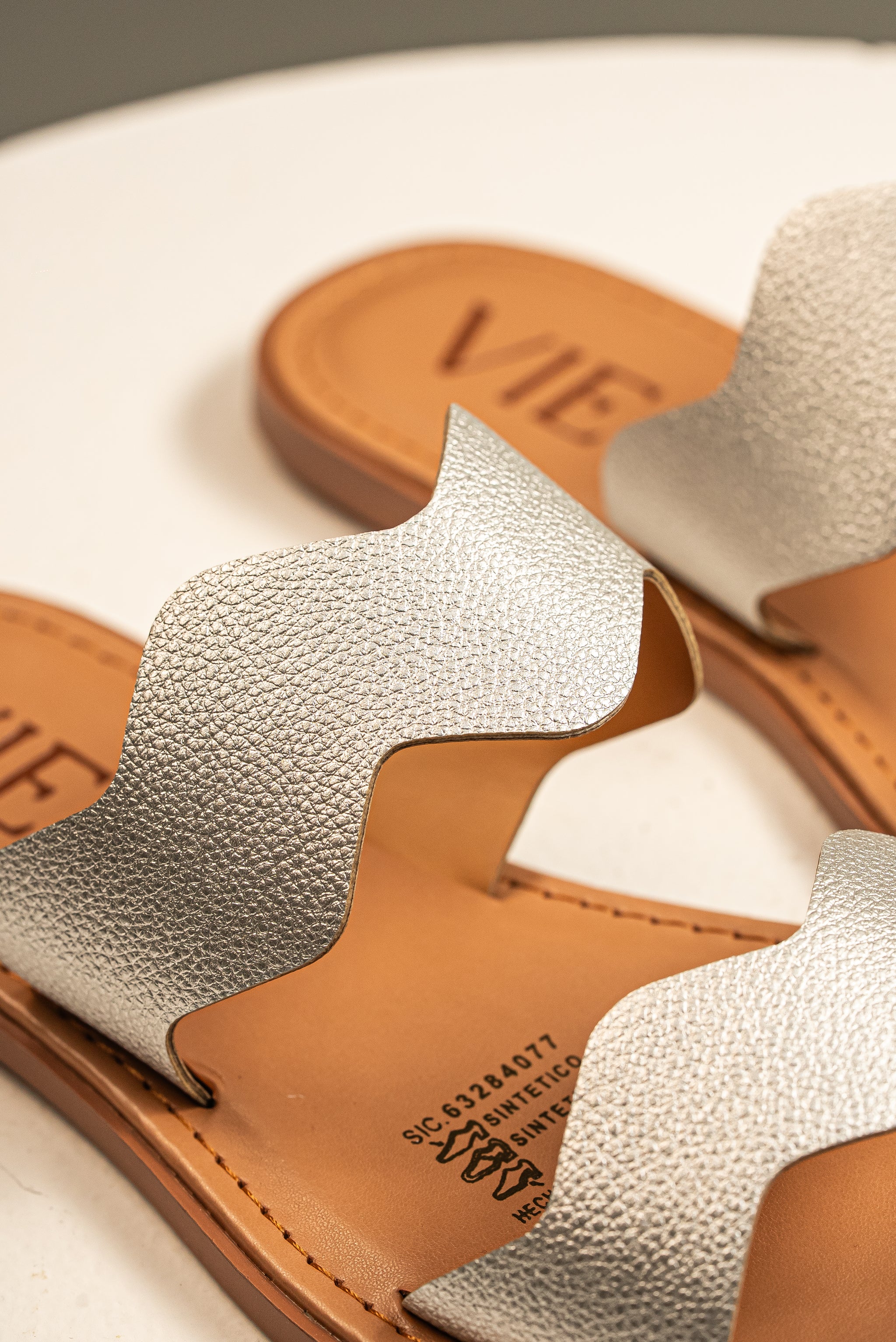 Su diseño distintivo presenta tiras anchas con un elegante borde ondulado, garantizando un ajuste cómodo y un toque de modernidad. Perfecta para tus días de playa o para elevar tu outfit diario con un brillo sutil.
