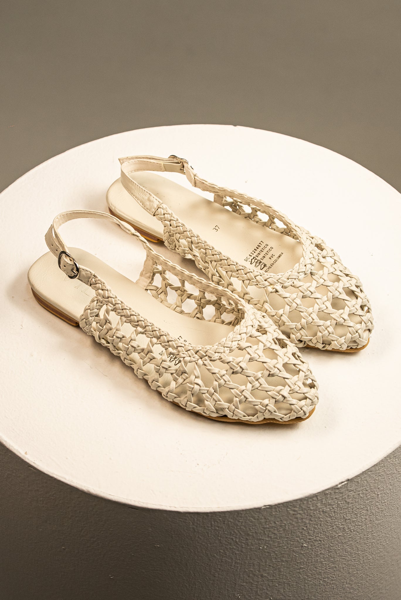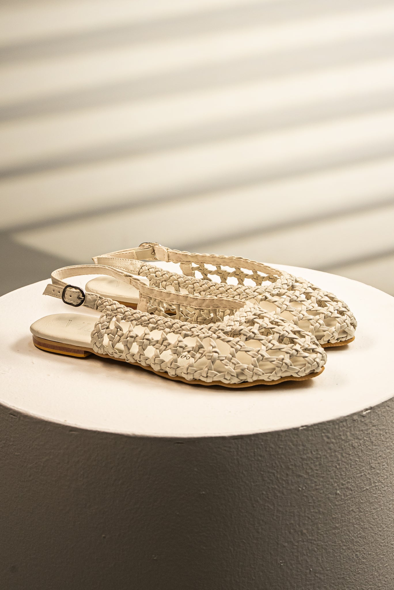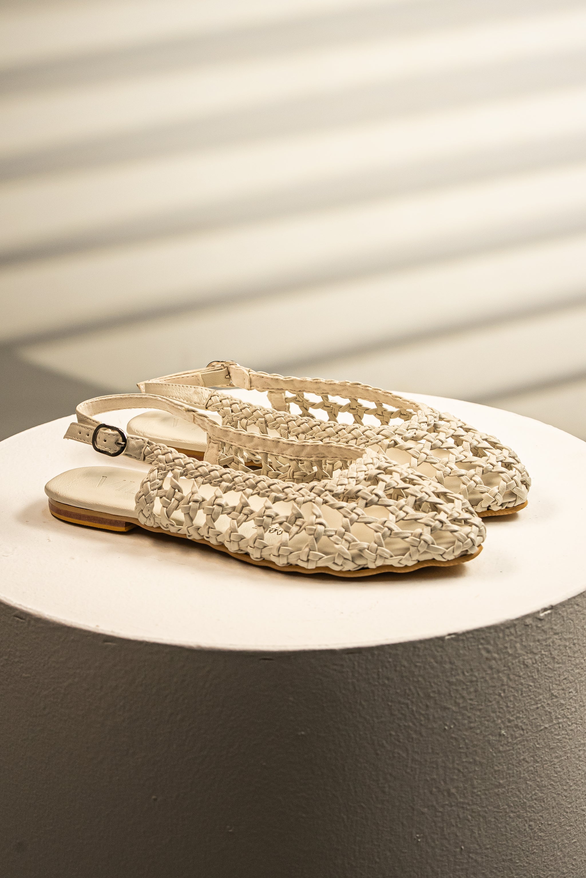 Esta sandalia slingback combina una punta cerrada de bailarina con un exquisito tejido de malla artesanal, que asegura frescura y un toque distintivo.