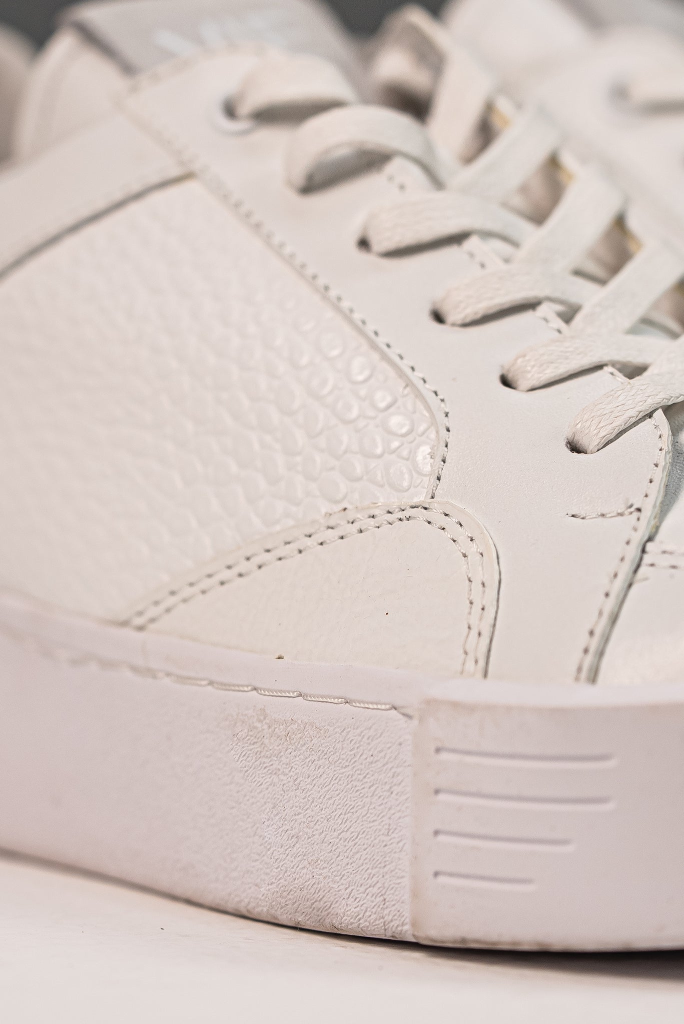 Son una declaración de diseño. Con una paleta de color totalmente blanca y una plataforma sutil, su atractivo reside en los detalles de la piel: un juego discreto de texturas que añade profundidad sin sobrecargar. Perfectos para quien busca un calzado versátil, moderno y fácil de combinar que mantenga la elegancia en todo momento.